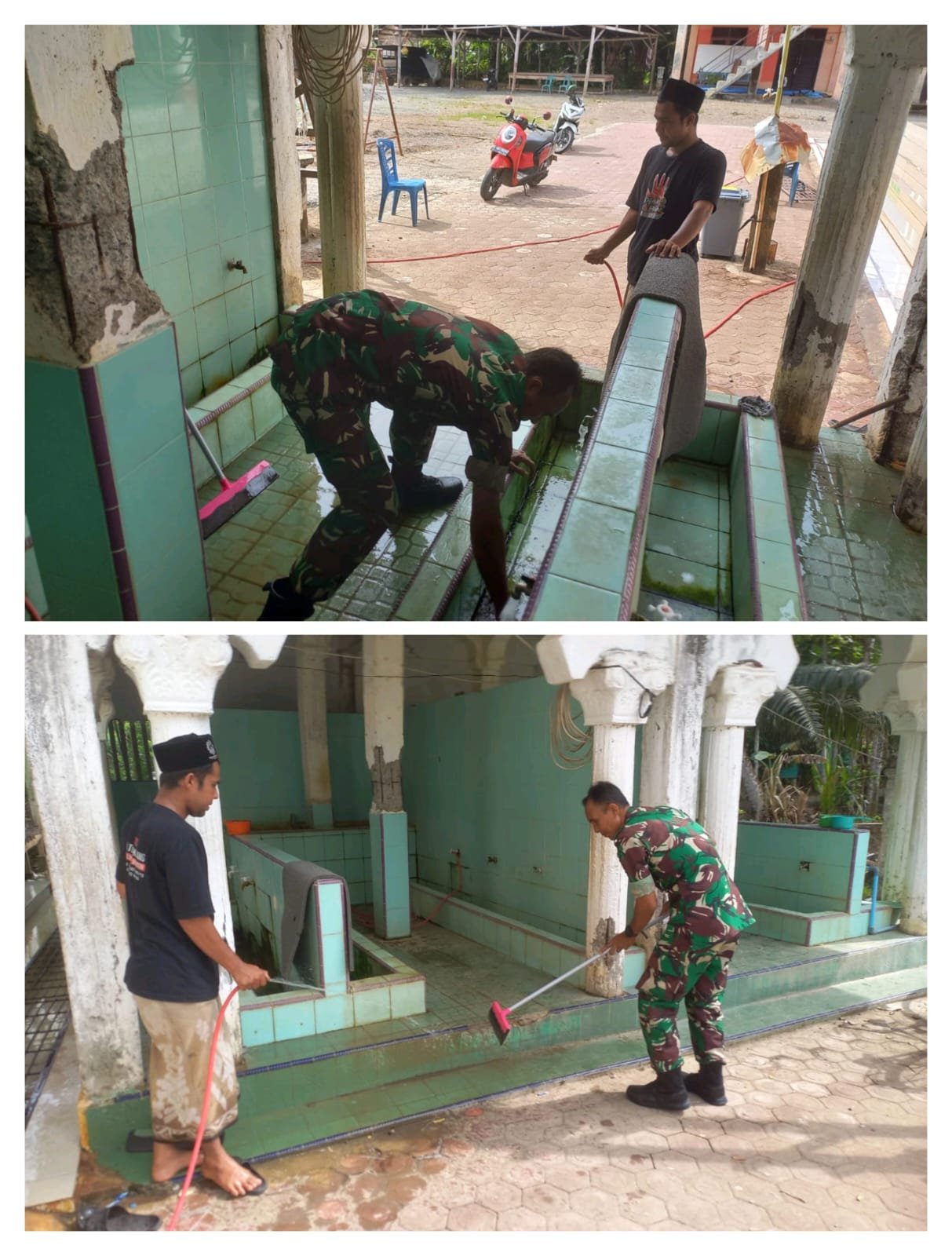 Kegiatan karya bakti tersebut dilaksanakan sebagai upaya menjaga kebersihan dan kenyamanan sarana ibadah, sekaligus mempererat hubungan silaturahmi serta kemanunggalan TNI dengan rakyat. Pembersihan dilakukan secara gotong royong antara Babinsa dan warga setempat, sehingga tercipta suasana kebersamaan dan kepedulian terhadap lingkungan.