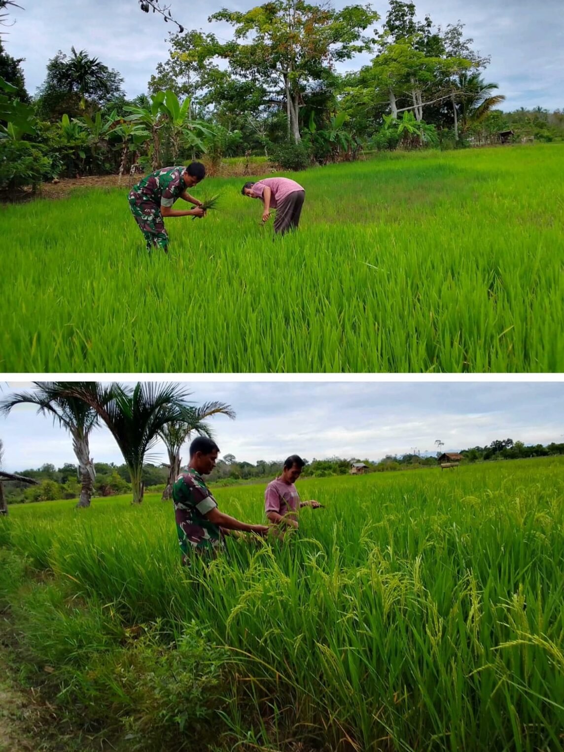 Kegiatan ini merupakan bagian dari tugas Babinsa dalam mendukung program ketahanan pangan serta membantu meningkatkan hasil panen masyarakat. Dalam kesempatan tersebut, Serka Heri J turun langsung ke sawah bersama warga untuk membersihkan gulma agar tanaman padi dapat tumbuh dengan baik dan optimal.