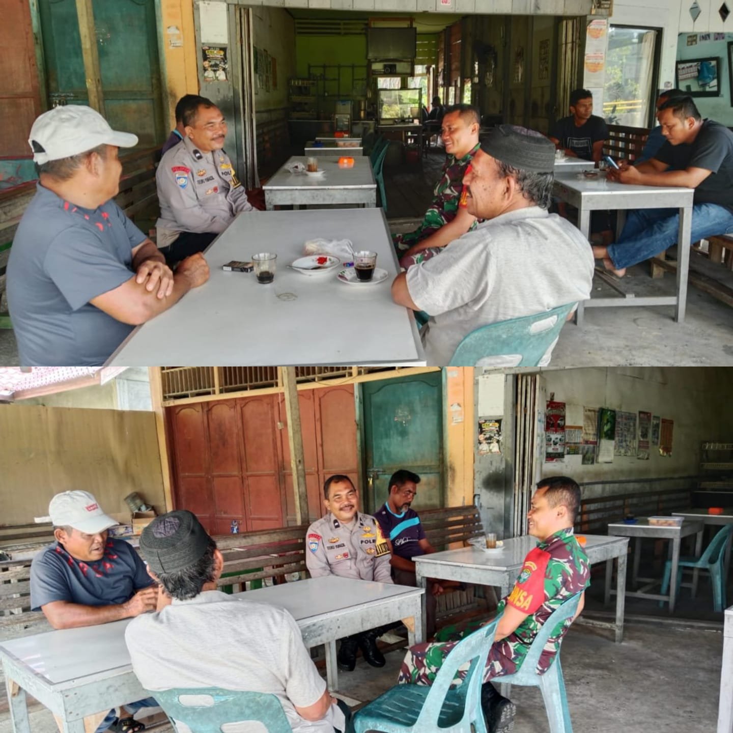 ACEH BARAT — Dalam upaya memperkuat sinergi antara aparat keamanan dan masyarakat, Babinsa Koramil 09/Samatiga bersama Aipda Teuku selaku Bhabinkamtibmas Polsek Samatiga melaksanakan kegiatan komunikasi sosial (komsos) dengan warga Desa Reusak, Kecamatan Samatiga, Kabupaten Aceh Barat, Selasa (14/1/2026). Kegiatan ini berlangsung di salah satu warung kopi sederhana yang menjadi tempat berkumpul warga, menciptakan suasana santai namun penuh makna.