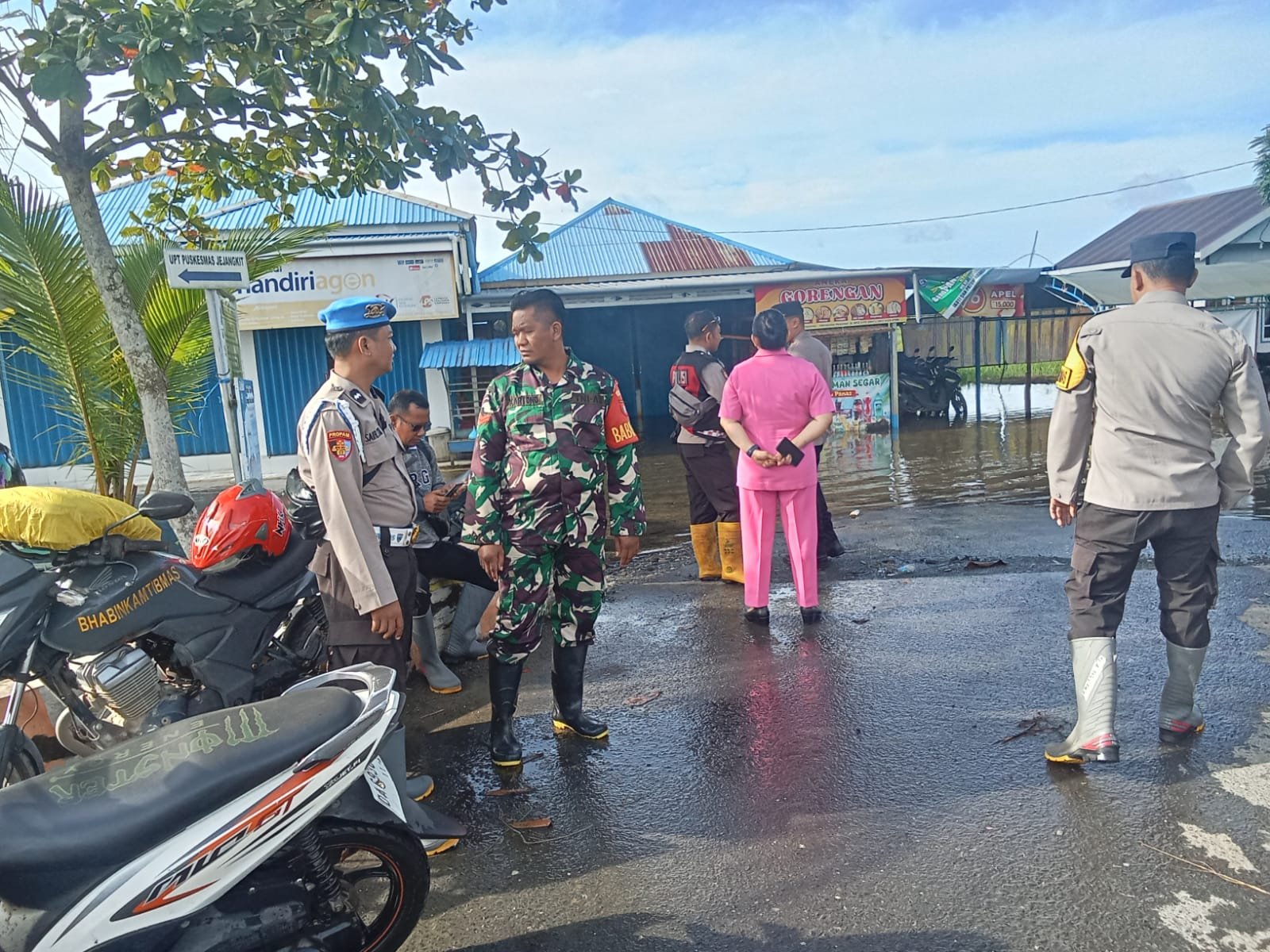 Kegiatan ini dilaksanakan di tengah kondisi lingkungan yang masih tergenang air akibat banjir yang melanda beberapa hari terakhir. Aparat gabungan tampak sigap dan terorganisir, menggunakan kendaraan operasional dan perlengkapan darurat untuk menjangkau warga yang membutuhkan bantuan. Kehadiran mereka tidak hanya memberikan rasa aman, tetapi juga menunjukkan komitmen nyata dalam membantu masyarakat.