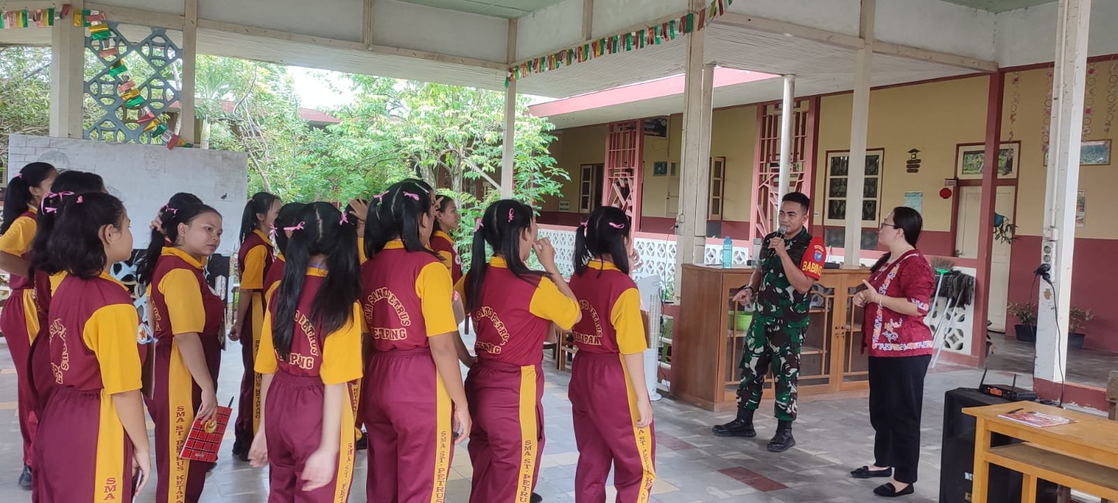 KETAPANG – Dalam rangka membentuk karakter generasi muda yang berdisiplin dan memiliki jiwa patriotisme, Babinsa Koramil 1203-12/Delta Pawan, Sertu Mahrief, melaksanakan kegiatan Pelatihan Dasar Kepemimpinan (PDK) kepada para siswa di Aula SMK Santo Petrus Ketapang, Jalan Jenderal Sudirman, Kelurahan Mulia Baru, Kecamatan Delta Pawan. Jum’at, (13/03/2026).