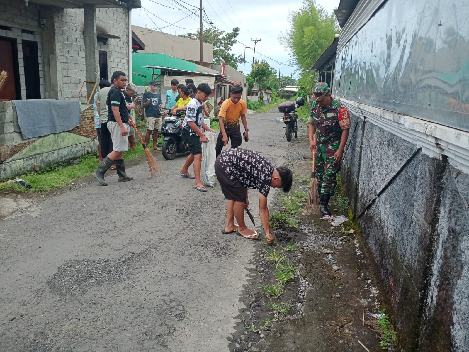 Kegiatan berlangsung dengan penuh semangat dan gotong royong. Masyarakat bersama Babinsa bahu membahu membersihkan area pekuburan dan akses jalan agar lebih rapi dan nyaman, serta memperindah Mushola Umusalma dengan pengecetan dan pemasangan kanopi guna menunjang kenyamanan jamaah dalam beribadah.