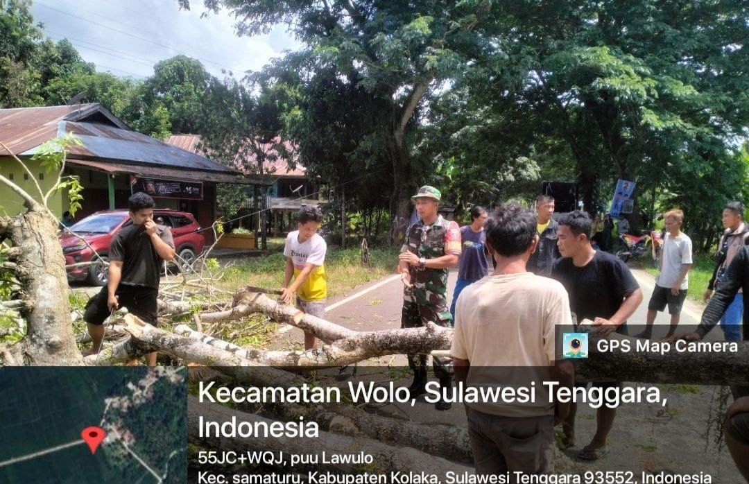 Kegiatan tersebut dilaksanakan di Desa Puu Lawulo, Kecamatan Samaturu, Kabupaten Kolaka. Pohon tumbang yang menutup sebagian badan jalan sempat menghambat arus lalu lintas dan aktivitas warga setempat.