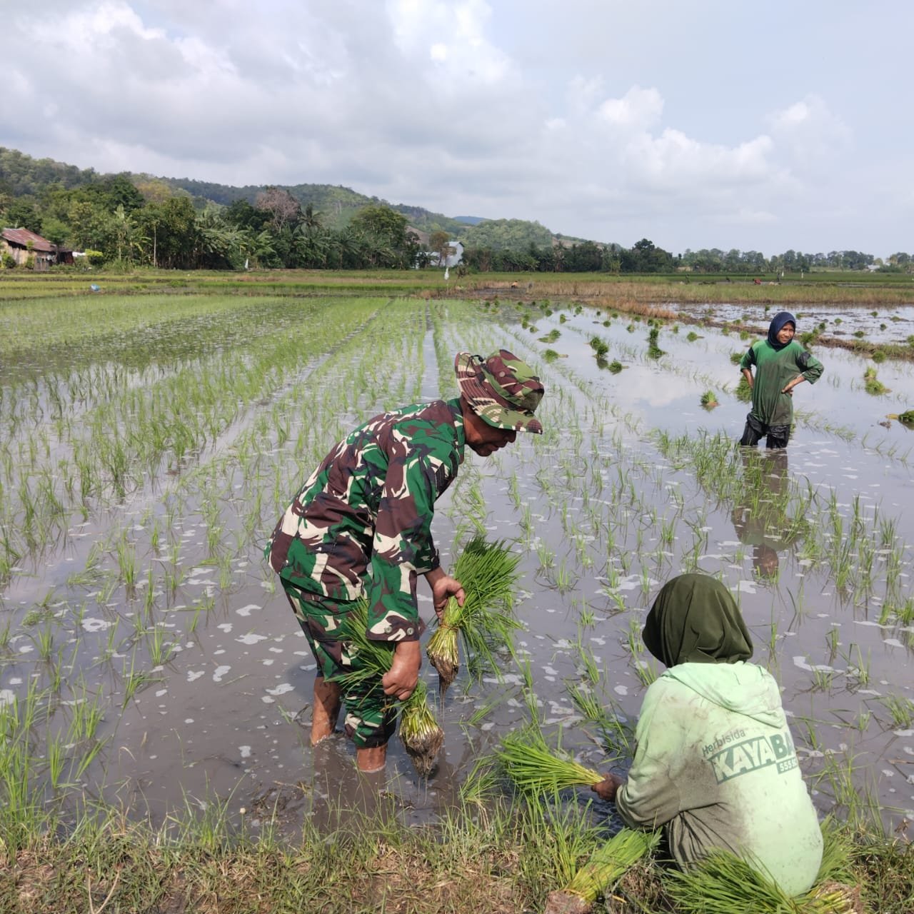 Sementara itu, salah satu petani setempat mengaku sangat terbantu dengan kehadiran Babinsa di sawah.