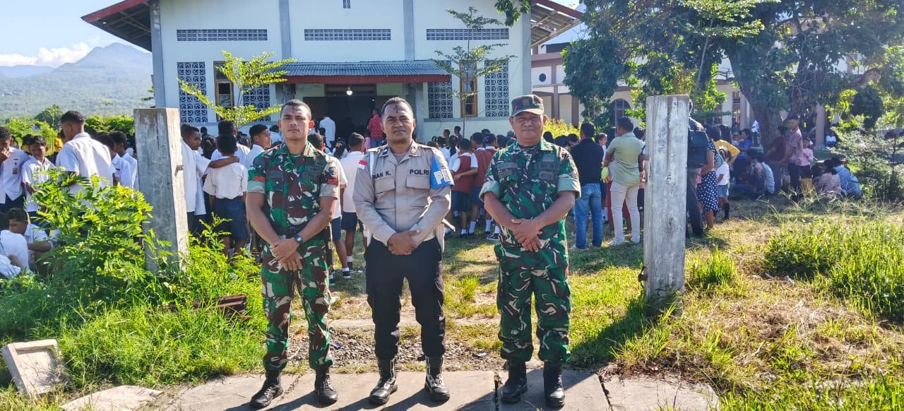 Di tengah arus jemaat yang datang, hadir pula Sertu Ferdinandus Haryanto bersama tiga personel Babinsa dari Koramil 1612-05/Satar Mese. Kehadiran mereka bukan sekadar menjaga keamanan, melainkan memastikan setiap umat dapat beribadah dengan tenang dan penuh kedamaian.