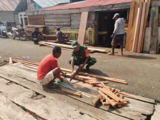 Babinsa Koramil 1801-01/Manokwari serda Rusiadin menunjukan kepedulian sosialnya kepada warga binaan nya dengan bergotong royong meringankan beban warga nya membantu pembuatan pondasi pagar rumah milik bapak Marsel warga di Kampung Transad Kelurahan Anday Distrik Manokwari selatan, Kabupaten Manokwari., Provinsi Papua Barat, Kamis (23/01/2025).