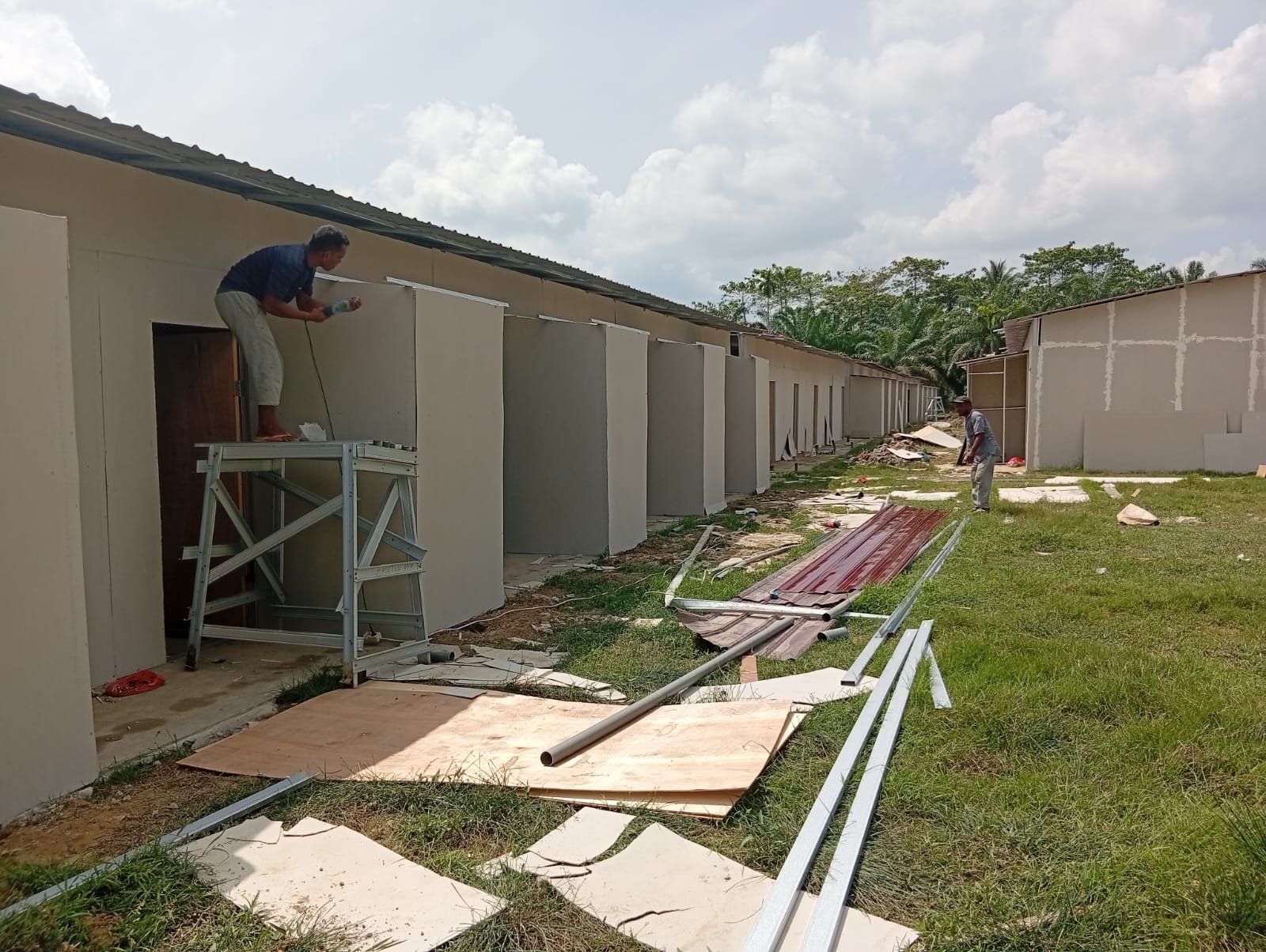 Pembangunan huntara ini dilaksanakan oleh pihak pelaksana CV/PT Erfolg Mandiri Indonesia di satu titik lokasi, yakni di lapangan Dusun Tengku Johan. Sebanyak 95 unit huntara sedang dibangun untuk menampung warga yang rumahnya tersapu arus banjir beberapa waktu lalu.