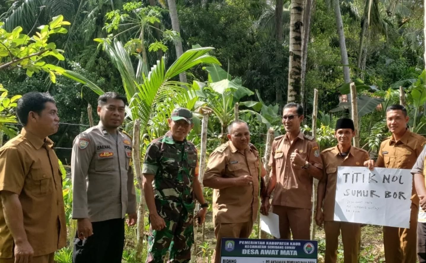 Kaur-Babinsa Koramil 408-03/KT Sertu Kaidi.f menghadiri undangan kegiatan titik Nol Pembuatan Sumur Boor menggunakan anggaran dari DD TA. 2025 di Desa Awat Mata Kecamatan Semidang Gumai Kabupaten Kaur,Senin (14/4/25)