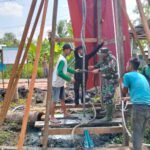 Menggala (Tulang Bawang) — Babinsa Koramil 426-02 Menggala, Kodim 0426 Tulang Bawang, Sertu Muhamad Saleh terjun langsung bersama masyarakat melaksanakan Gotong royong penimbunan jalan yang bertempat di Kampung Gunung Tapa Ilir, Kecamatan Menggala, Kabupaten Tulang Bawang, Minggu 16 Februari 2025.
