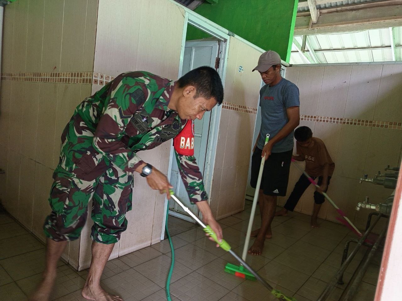 Upaya nyata tersebut antara lain dengan cara terjun langsung bersama masyarakat melakukan kegiatan bakti sosial kerja bakti, seperti bersihkan tempat ibadah, ungkap Babinsa.