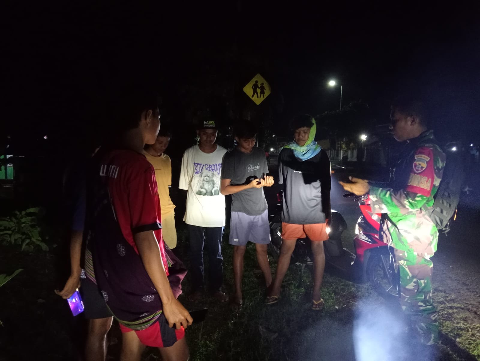 Patroli tersebut dilaksanakan oleh Babinsa Desa Sawe, Serda Adi Putra, dengan menyasar titik-titik yang kerap dijadikan tempat berkumpul para remaja, khususnya di pinggir jalan dan area umum pada malam hari.