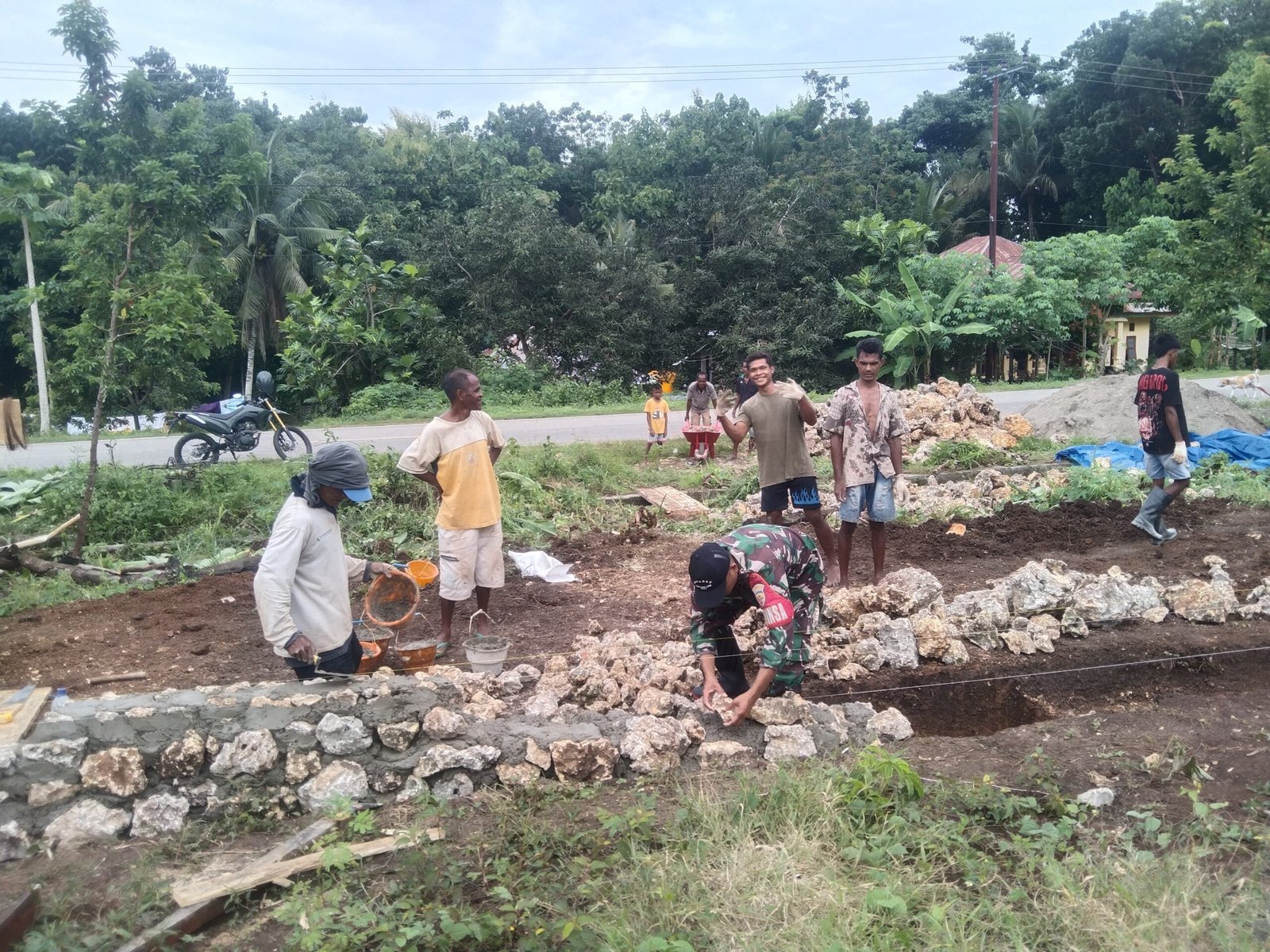 SUMBA BARAT – Babinsa Koramil 02/Walakaka Kodim 1613/Sumba Barat Sertu I Gusti Kade Arta melaksanakan pendampingan pengerjaan pondasi pembangunan Koperasi Desa Merah Putih di Desa Rua, Kecamatan Wanukaka, Kabupaten Sumba Barat, Jumat (16/01/2026).