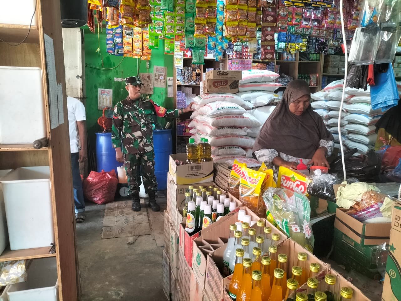 ACEH JAYA – Pemantauan harga kebutuhan pokok dilakukan Babinsa di wilayah Kecamatan Panga, Kabupaten Aceh Jaya, Senin (16/03/2026). Kegiatan ini bertujuan untuk mengetahui perkembangan harga sembako di pasar sekaligus memastikan ketersediaan bahan pokok bagi masyarakat.