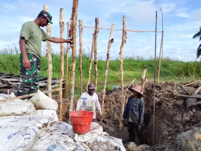 Koptu Krisbiantoro selaku Babinsa setempat menyampaikan apresiasi dan semangat terhadap progres pembangunan Jembatan Garuda yang kini telah memasuki tahap penancapan galam dan pengecoran pondasi.
