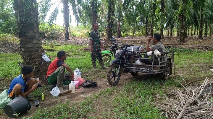 Babinsa Posramil Darul Hikmah Laksanakan Komsos dengan Petani Sawit di Desa Fajar