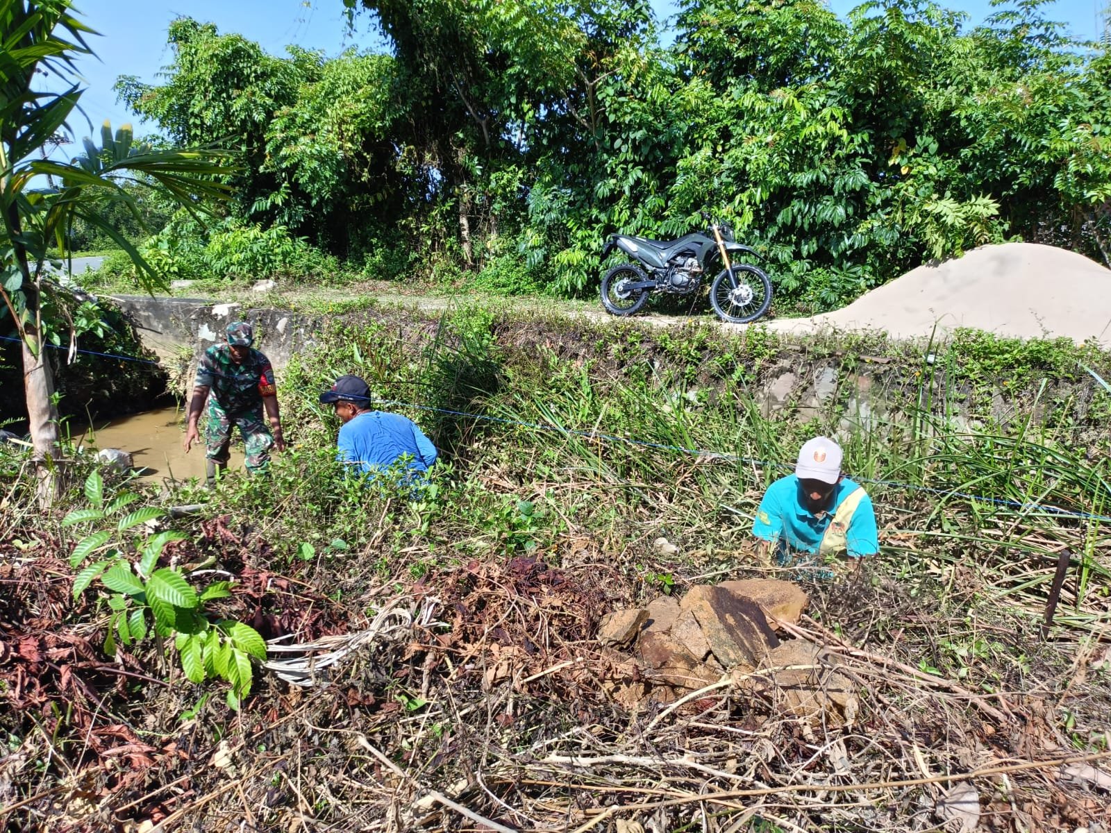 Babinsa Serda Hasan Turun Langsung Bantu Warga Bangun Parit Irigasi Sawah di Darul Hikmah