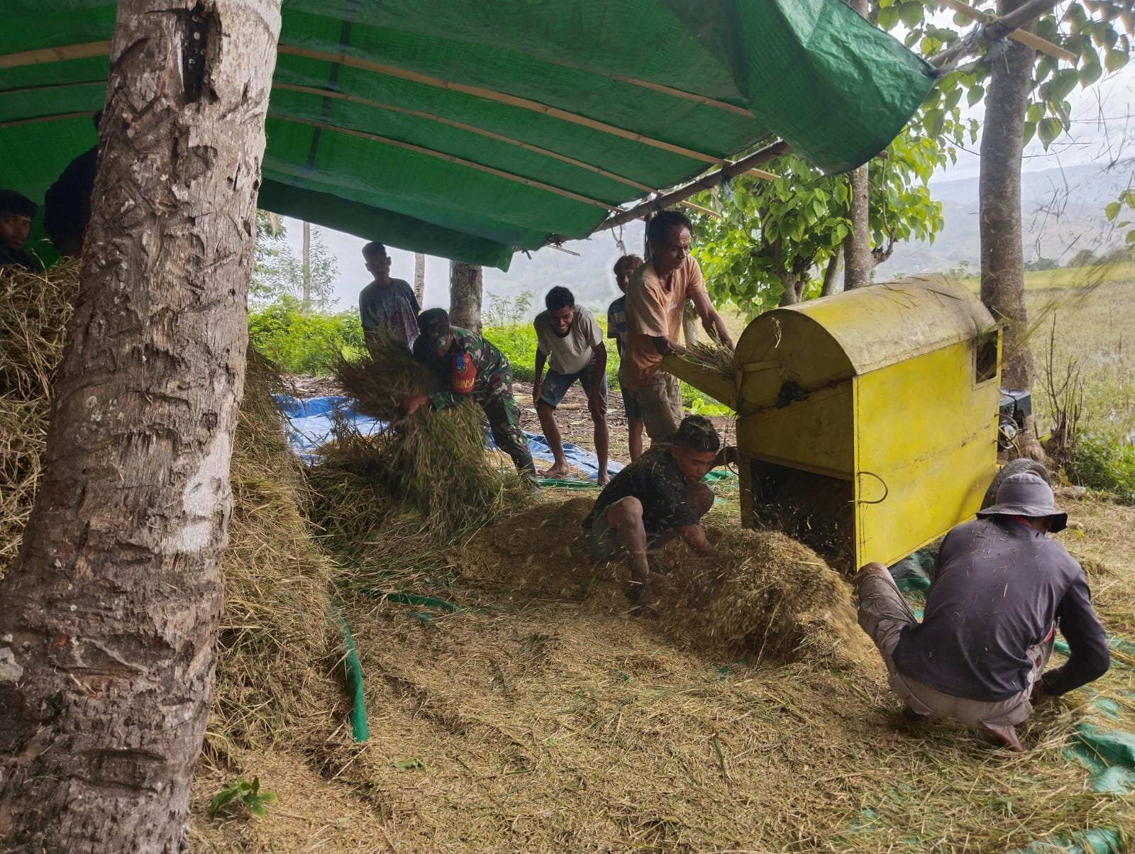 Kegiatan tersebut merupakan bagian dari tugas dan tanggung jawab Babinsa dalam mendampingi serta membantu masyarakat di wilayah desa binaan, khususnya para petani yang sedang melaksanakan panen padi.