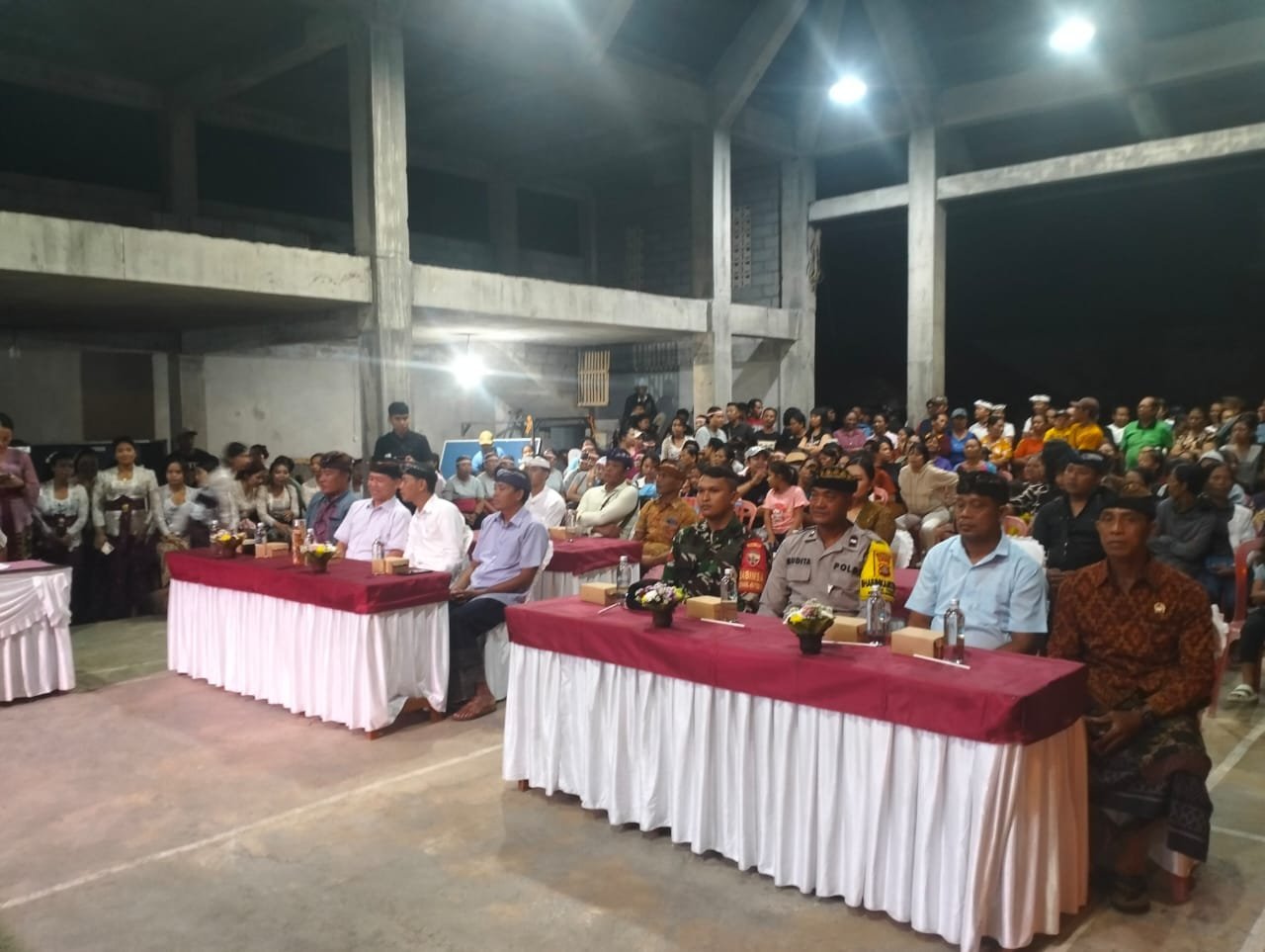 Klungkung, – Sebagai wujud dukungan terhadap generasi muda, Babinsa Tegak Praka Galang menghadiri sekaligus melaksanakan pengamanan puncak HUT ST. BHUANA HARUM Ke-25 2025 yang dirangkai HUT RI Ke-80.