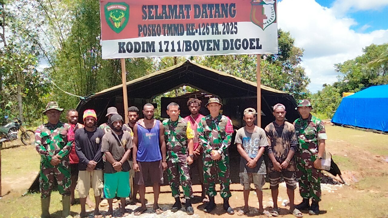 Boven Digoel – Babinsa Kampung Soekanggo Distrik Mabdobo Koramil 1711-03/TMR, Sertu Nurdianto berserta rekannya melaksanakan kegiatan Karya Bakti ( Karbak) pada Kamis (20/11/2025), bertempat di Rumah milik Bpk Giarto Jl.Trans Papua Kampung Soekanggo Distrik Mandobo Kab. Boven Digoel, dalam rangka membantu warga binaannya untuk membangun rumah tempat tinggal.