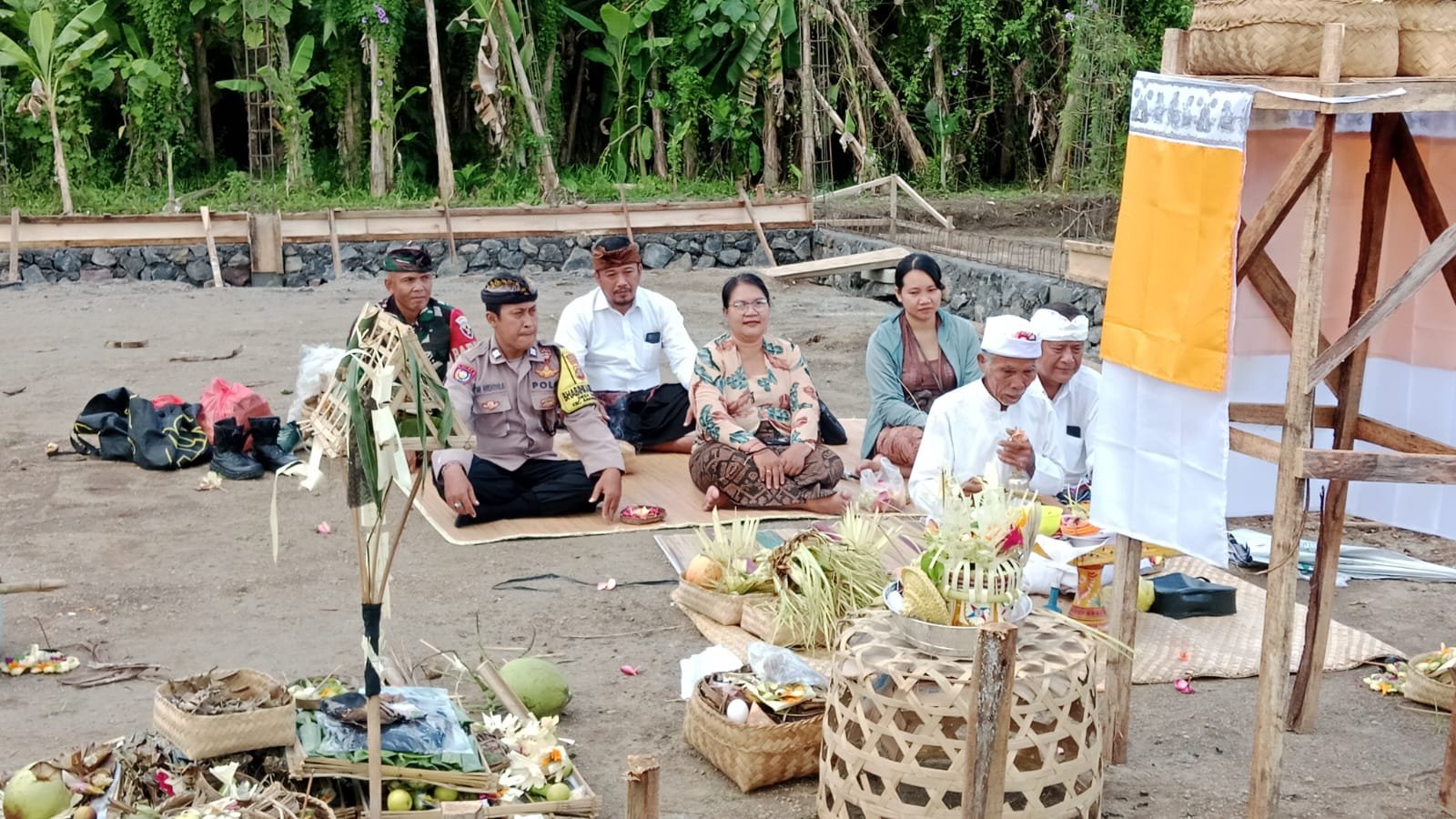 Lahan yang akan dijadikan bangunan KDKMP ini sebelumnya adalah persawahan. Jadi ada beberapa ritual yang wajib dilakukan sesuai tuntunan kami umat Hindu yang meliputi Ngamantukang atau Ngantukang Dewi Sri yang dimaknai sebagai proses mengembalikan kuasa Ida Bhatari terhadap area itu untuk selanjutnya diubah dari yang semula sawah menjadi bangunan.