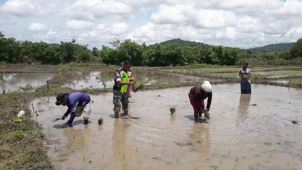 Dalam suasana penuh kebersamaan, Babinsa bersama warga bahu-membahu menanam padi dengan harapan dapat meningkatkan hasil panen ke depan. Sertu Sebastian Timo juga memberikan semangat kepada para petani agar tetap optimis dan terus mengelola lahan pertanian secara maksimal sebagai sumber utama penghidupan masyarakat desa,”Ujarnya.