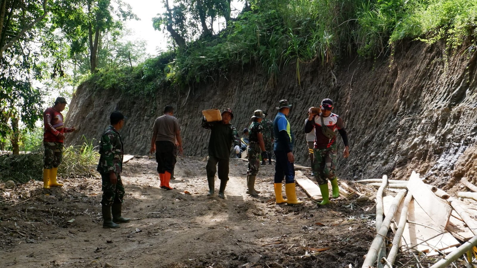 “Untuk hari ini, kita Satgas dibantu masyarakat, melanjutkan pengerjaan pembuatan jembatan dengan pemasangan pondasi,” terangnya.