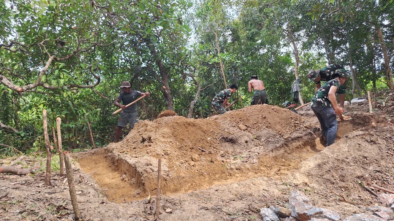 Suasana kerja di lokasi pembangunan dipenuhi semangat kebersamaan. Meski harus menempuh jalur yang cukup berat, personel Satgas TMMD dan warga tetap bekerja dengan penuh semangat sambil saling menyemangati satu sama lain.