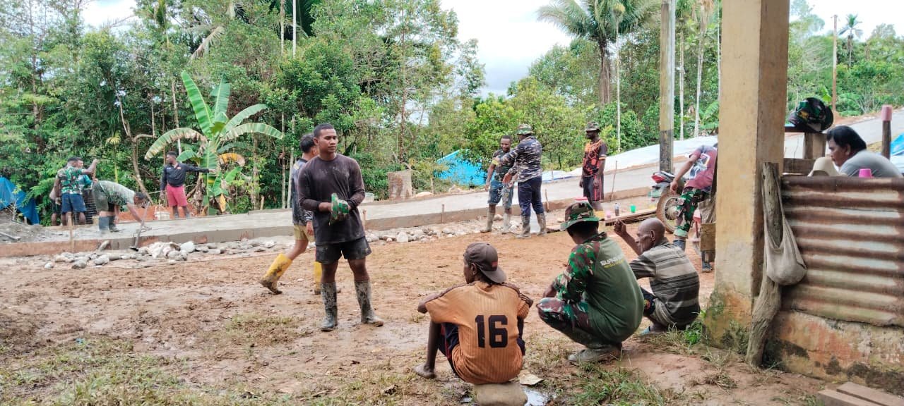 Bangun Keakraban di Lokasi TMMD 126, TNI dan Warga Kampung Waropko Bahu-Membahu