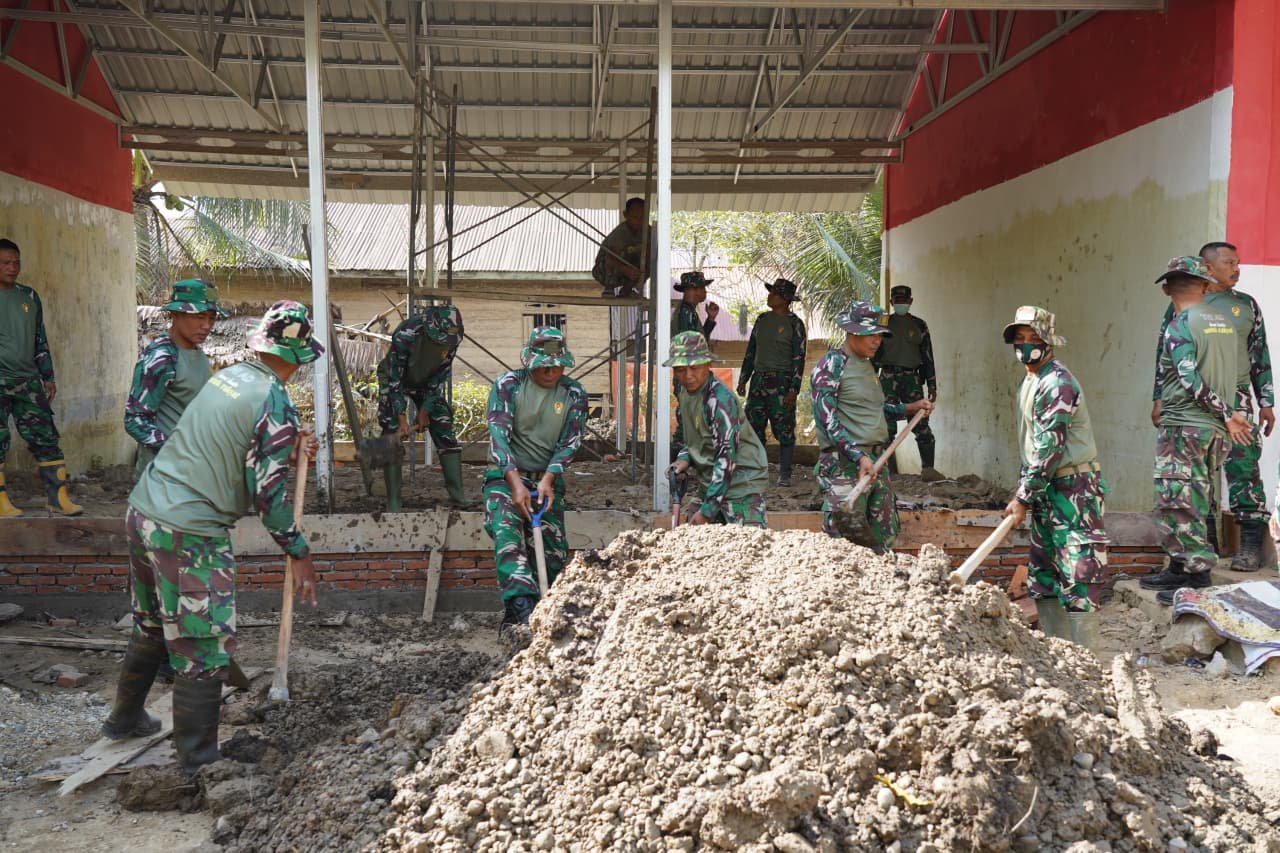 Selain itu, personel TNI juga melaksanakan penimbunan balai pengajian, pengecatan kamar mandi lama, serta pemasangan tiang bendera sekolah sebagai bagian dari penataan kembali lingkungan pendidikan pascabencana, katanya.