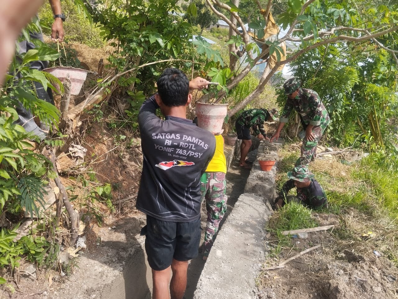 TTS _ Tingkatkan pola hidup sehat di lingkungan masyarakat, Babinsa Koramil 1621-01/Kota So’e Sertu Herlon Sine melaksanakan gotong royong membuat Jamban/WC Sehat bersama warga masyarakat bertempat di Dusun A Desa Tuakole Kec. Batu Putih Kab. TTS. Selasa (22-07-2025)
