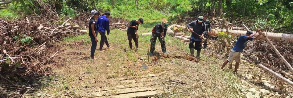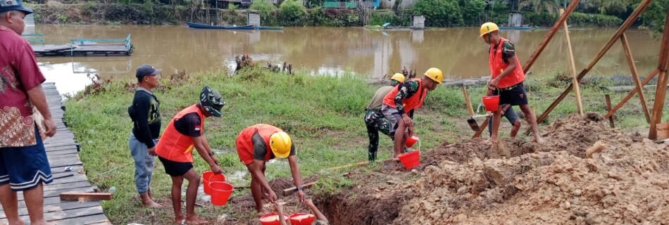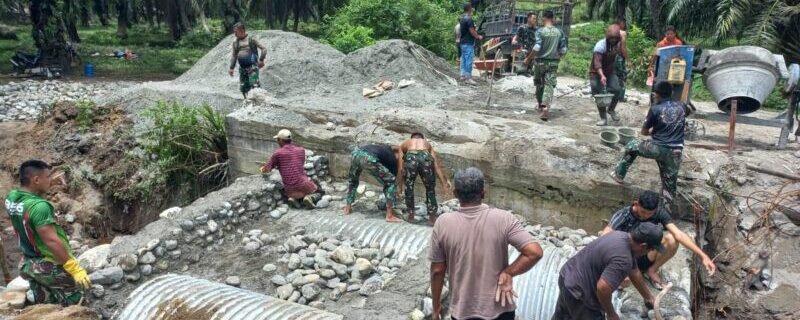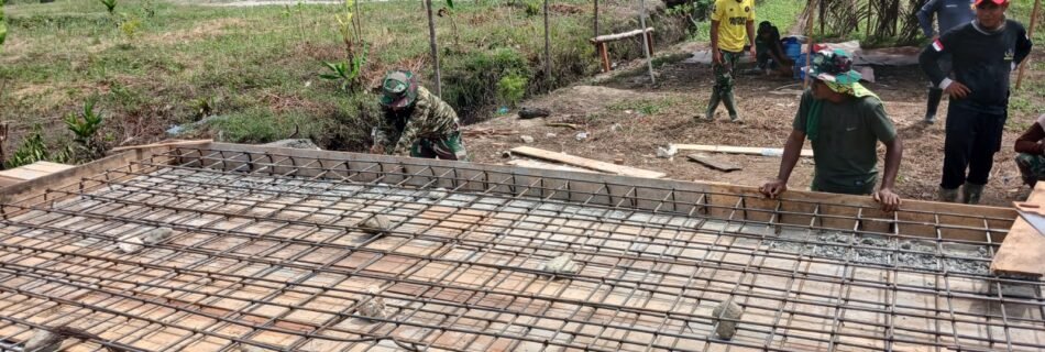 Satgas Jembatan Gantung Kodim 0408/BS Rakit Besi Buat Beton Pondasi Jembatan
