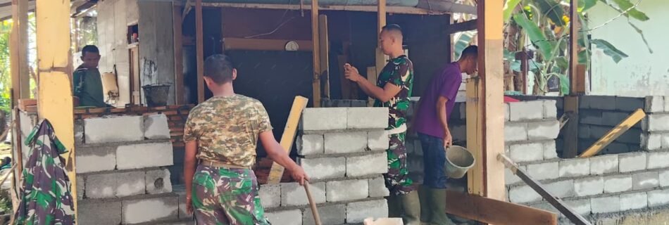 Aceh Barat – Di bawah langit pagi Desa Lueng Jawa, harapan seolah dirajut kembali oleh Personel Satgas TMMD Reguler ke-127 Kodim 0105/Abar yang tengah merehab rumah milik Nenek Kisah (66), Rabu (4/3/2026). Setiap gerakan tangan membawa arti. Adukan semen menjadi perekat bukan hanya bagi bangunan, tetapi juga kebersamaan antara TNI dan masyarakat. Rumah yang dahulu …