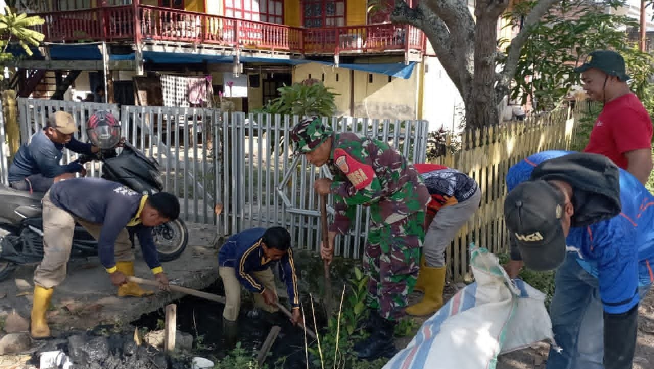 Kegiatan ini difokuskan pada pengangkatan sampah dan pengerukan sedimen lumpur yang menyumbat drainase di sekitar pemukiman warga. Sinergi antara TNI, aparat kelurahan, dan warga ini merupakan wujud nyata kepedulian bersama terhadap kesehatan lingkungan dan upaya mitigasi bencana banjir di wilayah tersebut.