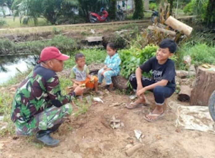 Sumbawa Barat, NTB- Di Selah-Selah Kesibukan Program TNI Manunggal Membangun Desa (TMMD) Ke-123 Kodim 1628/Sumbawa Barat, terlihat dalam senggang waktu Personil Satgas TMMD Ke 123 Menyempatkan diri membangun Komunikasi Sosial serta Kearifan bersama masyarakat sekitar Desa Batu Putih Kecamatan Taliwang Sumbawa Barat, guna membangun keharmonisan sosial antara TNI dan Masyarakat, Minggu (02/03/2025)