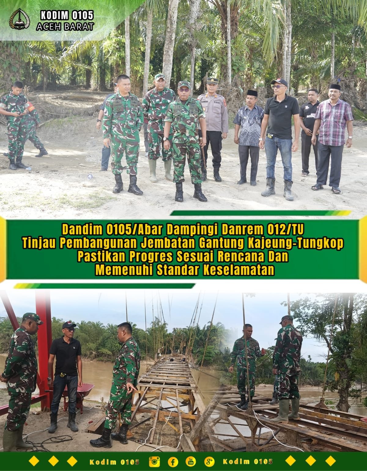 Hal senada disampaikan Dandim 0105/Abar Letkol Inf S. Kembaren, S.E., M.I.P., CFrA., bahwa akses jembatan yang memadai nantinya akan memperlancar transportasi serta mendukung aktivitas masyarakat Desa Kajeung–Tungkop dan desa sekitarnya dalam menggerakkan roda perekonomian, meningkatkan kesejahteraan, serta mendorong kemandirian masyarakat.