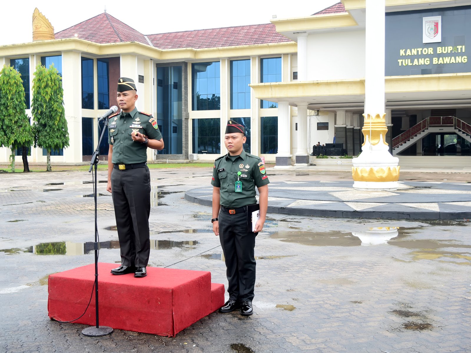 Menggala (Tulang Bawang) — Komandan Distrik Militer (Dandim) 0426/Tulang Bawang, Letkol Inf Syurya Dharma, bertindak selaku Inspektur Upacara (Irup) pada pelaksanaan upacara bendera bulanan yang digelar di halaman Kantor Pemerintah Daerah Kabupaten Tulang Bawang, Jl Cemara Kel. Menggala Selatan, Kecamatan Menggala, Kabupaten Tulang Bawang, pada Senin 19 Januari 2026.