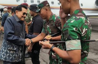 Blambangan Umpu – Komandan Kodim 0427/Way Kanan, Letkol Arm Sigit Windarto, S.Sos., M.Han., turut menyambut kedatangan Jenderal TNI (Purn) Prof. Dr. A.M. Hendropriyono, S.T., S.H., M.H., beserta rombongan di Lapangan Udara Angkatan Darat (Lanudad) Gatot Soebroto, Kecamatan Way Tuba, Kabupaten Way Kanan, Rabu (31/12/2025).