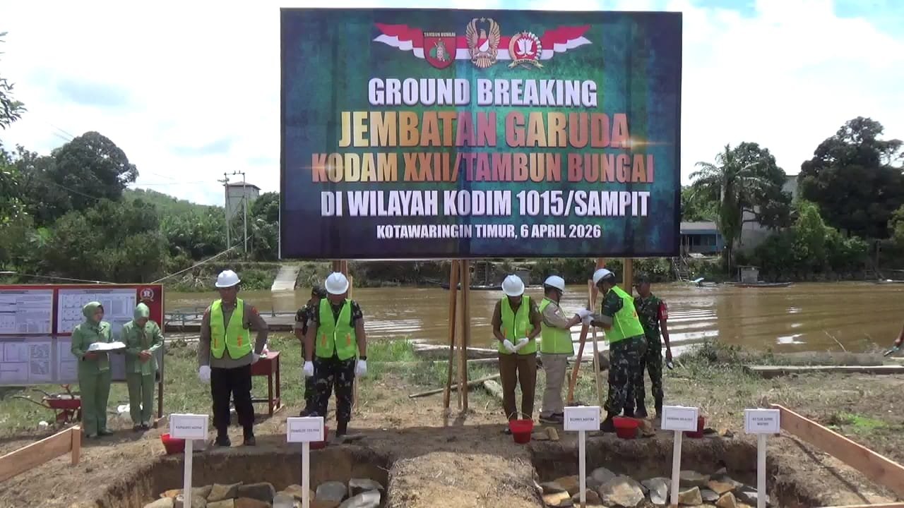Kotawaringin Timur – Komandan Kodim 1015/Sampit, Letkol Inf Dwi Candra Setyawan, menghadiri kegiatan Ground Breaking pembangunan Jembatan Perintis Garuda XXII/Tambun Bungai yang dilaksanakan di Dusun Tandang, Desa Barunang Miri, Kecamatan Parenggean, Kabupaten Kotawaringin Timur, Senin (6/4/2026).