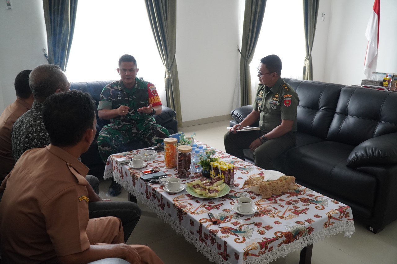 SIDRAP, – Dandim 1420/Sidrap Letkol Inf Andi Zulhakim Asdar, S.H.I., M.H.I., menerima audiensi dari Plh. Pelaksanaan Harian Dinas Koperasi dan Tenaga Kerja Kabupaten Sidrap, Bapak Sahrul Mubarak, di Markas Komando Distrik Militer (Makodim) 1420/Sidrap, Senin (12/1).