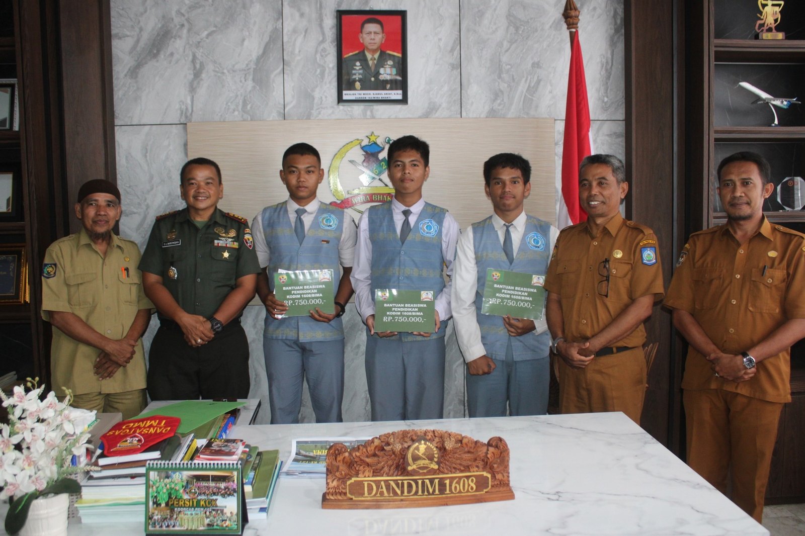 Kedatangan Kepala Sekolah beserta guru pendamping dan siswa SMA Negeri 1 Kota Bima disambut hangat oleh Letkol ArhbSamuel Limbongan. Dilanjutkan penyerahan beasiswa secara langsung oleh Dandim 1608/Bima kepada para siswa.