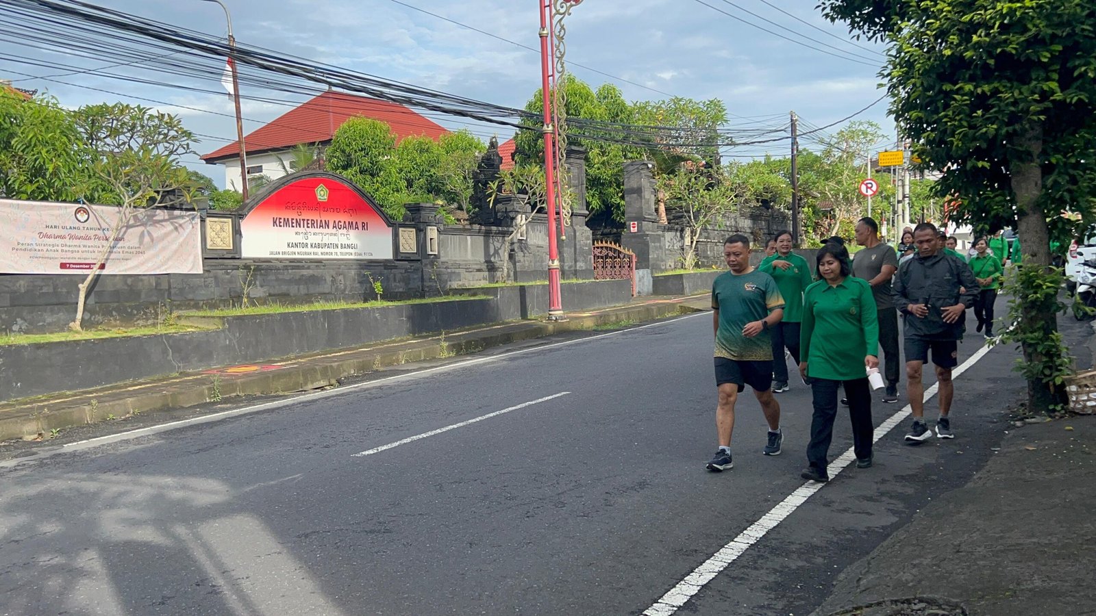 Bangli – Komandan Kodim 1626/Bangli Letkol Arm I Gede Arya Girinatha Utama memimpin kegiatan jalan santai bersama anggota sebagai upaya mewujudkan pola hidup sehat dan meningkatkan kebugaran jasmani, Selasa (16/12/2025)