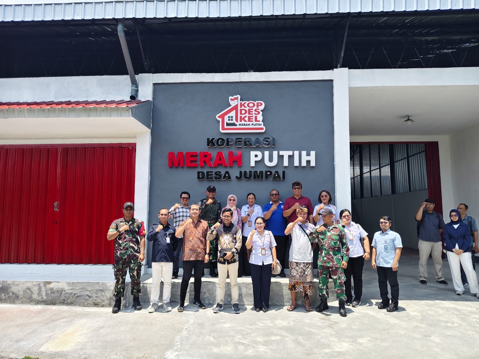 Tiba di lokasi KDKMP Desa Jumpai, Kecamatan/Kabupaten Klungkung, rombongan Kementerian Koperasi RI disambut langsung Dandim 1610/Klungkung Letkol Kav Sidik Pramono, S.Sos., M.M., M.Han yang dampingi Sekdis Koperasi UKM Perindustrian dan Perdagangan Kabupaten Klungkung Tjokorda Istri Wiradnyani beserta staf, Danramil 1610-01/Klungkung, Perbekel Desa Jumpai, Kepala Koperasi KDKPM Jumpai dan Babinsa Jumpai.