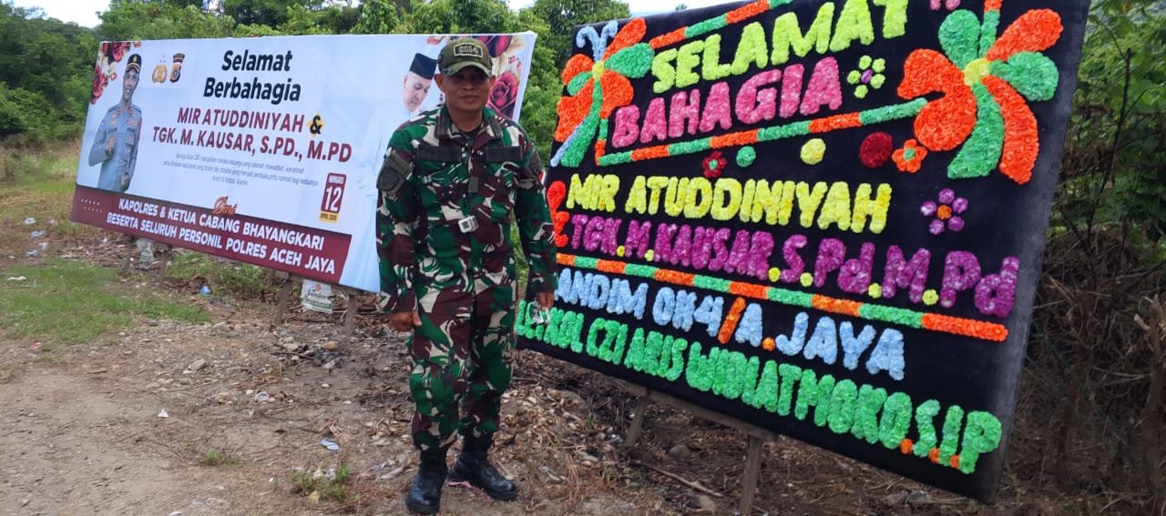 Kapten Inf Sofyan hadir mewakili Komandan Kodim 0114/Aceh Jaya Letkol Czi Aris Widiatmoko, S.I.P., yang berhalangan hadir secara langsung. Kehadiran tersebut sekaligus menyampaikan ucapan selamat kepada kedua mempelai beserta keluarga besar yang tengah berbahagia.