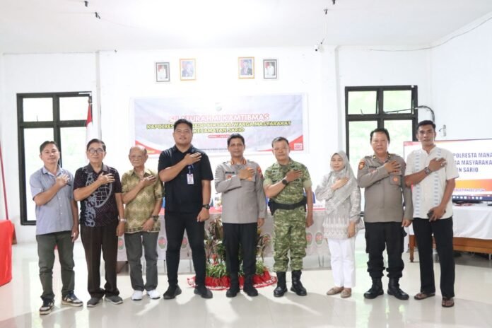 Selanjutnya, kegiatan dilanjutkan dengan sambutan dari Kapolresta Manado Kombes Pol Irham Halid, S.I.K., yang menyampaikan pentingnya peran aktif masyarakat dalam menjaga keamanan dan ketertiban di lingkungan masing-masing.