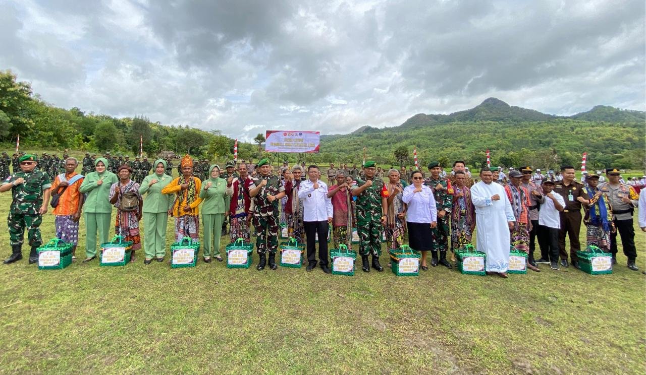 NTT–Kefamenanu. Kepedulian terhadap masyarakat kembali ditunjukkan dalam rangkaian kegiatan Upacara Penutupan TMMD Ke-127 Kodim 1618/TTU yang digelar di Desa Sunkaen, Kecamatan Bikomi Nilulat, Kabupaten Timor Tengah Utara (TTU), Rabu (11/03/2026) Dalam kesempatan tersebut, Danrem 161/Wira Sakti Brigjen TNI Hendro Cahyono bersama Ketua Persit KCK Koorcab Rem 161 PD IX/Udayana Ny. Kartika Adiningtyas Cahyono melaksanakan kegiatan pembagian bantuan sembako kepada masyarakat Desa Sunkaen.