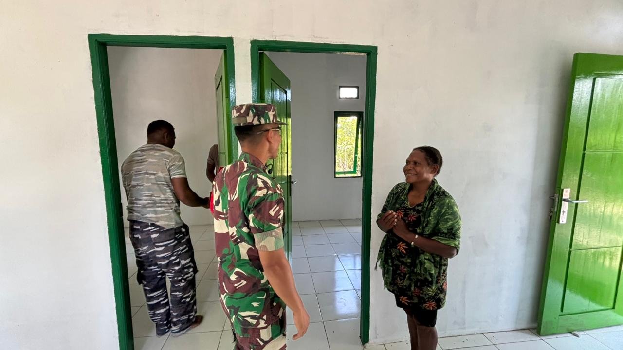 Kunjungan tersebut dilakukan untuk memastikan progres pembangunan rumah yang menjadi salah satu sasaran fisik TMMD berjalan sesuai dengan rencana. Dalam kesempatan itu, Dansatgas juga bertatap muka langsung dengan Ibu Evelina Surawi selaku penerima manfaat dari program pembangunan rumah tersebut.