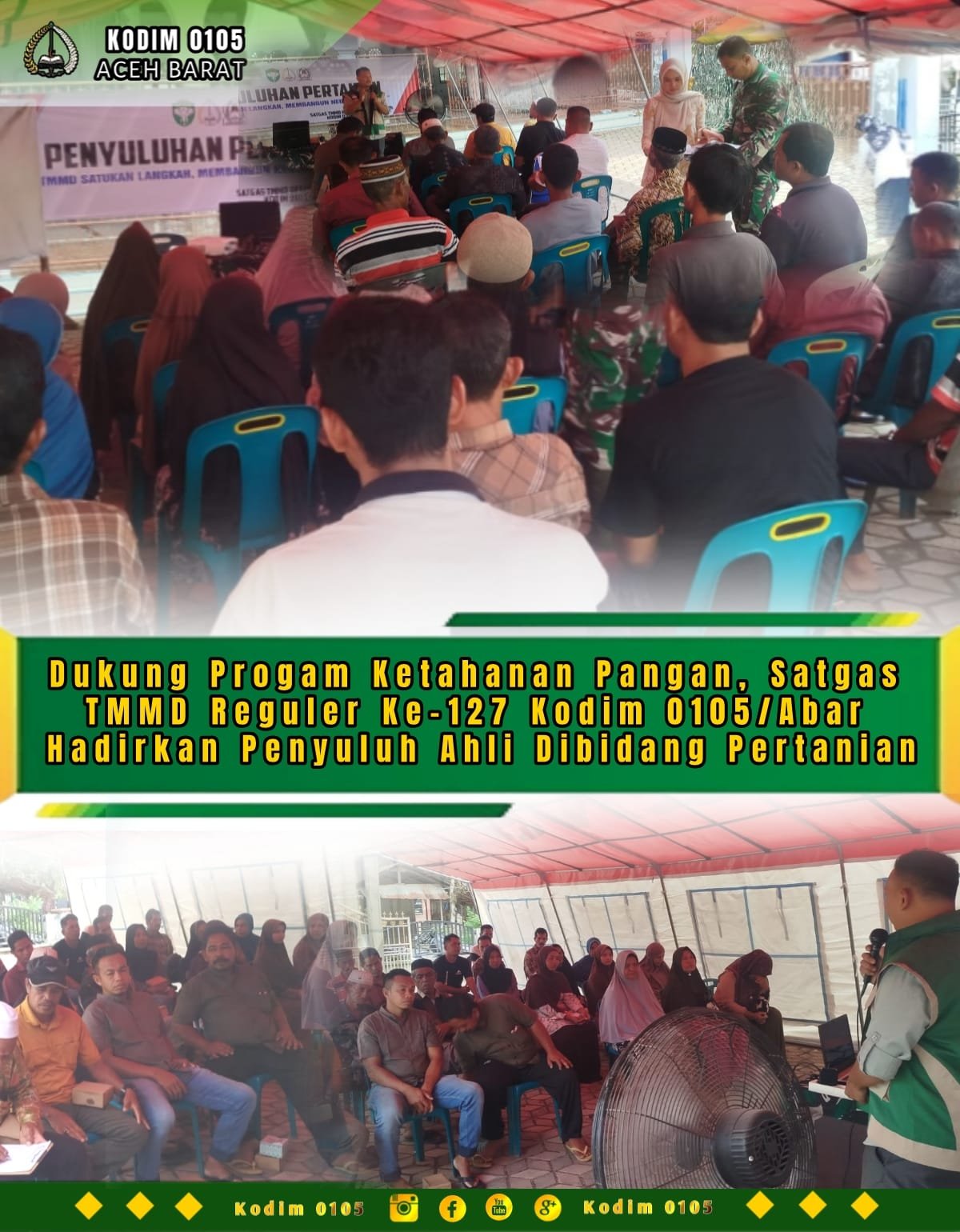Melalui sinergi TMMD Reguler ke-127 Kodim 0105/Aceh Barat bersama Dinas Pertanian ini, diharapkan Desa Pasi Aceh semakin maju, mandiri, serta mampu berkontribusi dalam menyukseskan program swasembada pangan nasional.(0105).