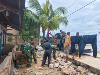 Prajurit TNI dan warga bekerja tanpa sekat. Tangan berseragam loreng dan tangan penuh debu tanah menyatu mengangkat material, menata pondasi, dan menyiapkan dasar bangunan. Keringat mengalir, namun tak ada keluhan. Karena yang sedang dibangun bukan sekadar bangunan, melainkan sumber kehidupan.