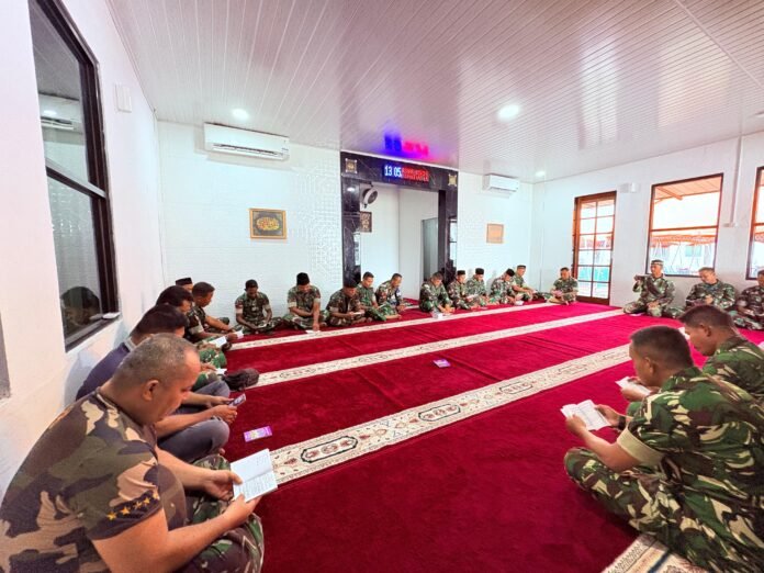 Lhokseumawe – Suasana haru dan khidmat menyelimuti Mushola An – Nur Makodim 0103/Aceh Utara, Jalan Kolonel Rifa’i Harahap, Kecamatan Banda Sakti, Kota Lhokseumawe, saat personel Kodim melaksanakan doa bersama untuk almarhum Praka Farizal Romadhon, Rabu (1/4/2026).