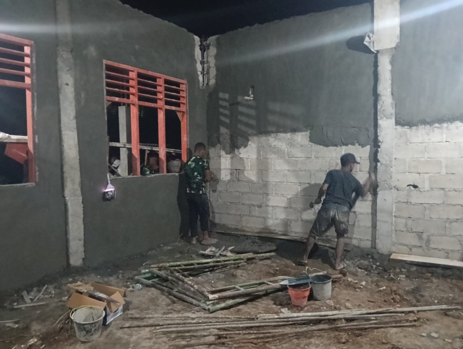NTT-Kefamenanu., Senin, 23 Februari 2026 – Di tengah sunyinya malam perbatasan Desa Sunkaen, cahaya lampu menerangi semangat pengabdian personel Satgas TMMD Ke-127 Kodim 1618/TTU. Para prajurit tetap melanjutkan pengerjaan plester tembok bagian dalam 4 RKB SMAN Bikomi Nilulat.